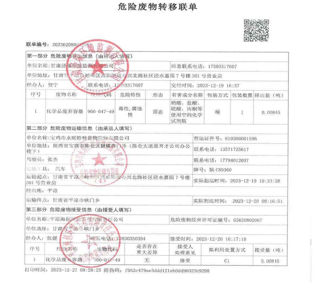 根據(jù)《中華人民共和國(guó)固體廢物污染環(huán)境防治法》(2020年9月1日修訂)的相關(guān)規(guī)定,甘肅涇瑞環(huán)境監(jiān)測(cè)有限公司依法及時(shí)公開(kāi)固體廢物污染環(huán)境防治信息,主動(dòng)接受社會(huì)監(jiān)督。